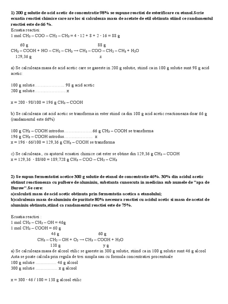 200 g solutie de acid acetic de concentratie 98 se supun reactiei de esterificare cu etanol.