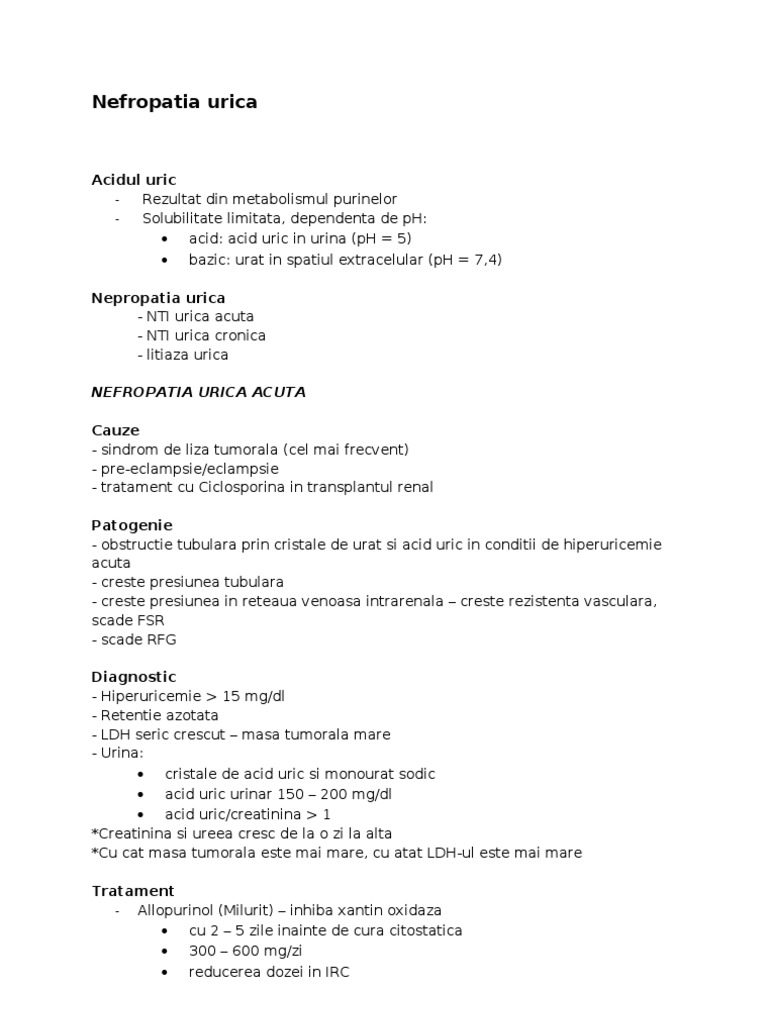 Acid uric seric crescut. Litiaza renală 20 dintre pacienţii cu hiperuricemie şi uraturie 700 mg zi nefropatie uratica sau urica poate fi cauza ireversibila de insuficienta renala cronica. Ce indică acidul uric crescut și cum să avem rinichi sănătoși. Interpretare analize medicale acid uric mărit. Patologia lui este în primul rând dominată de gută.
