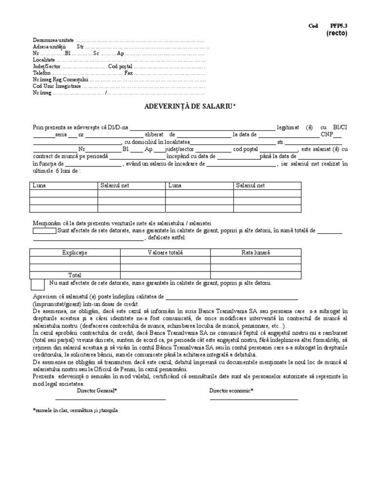 Adeverinta De Venit Model 2020 Banca Transilvania