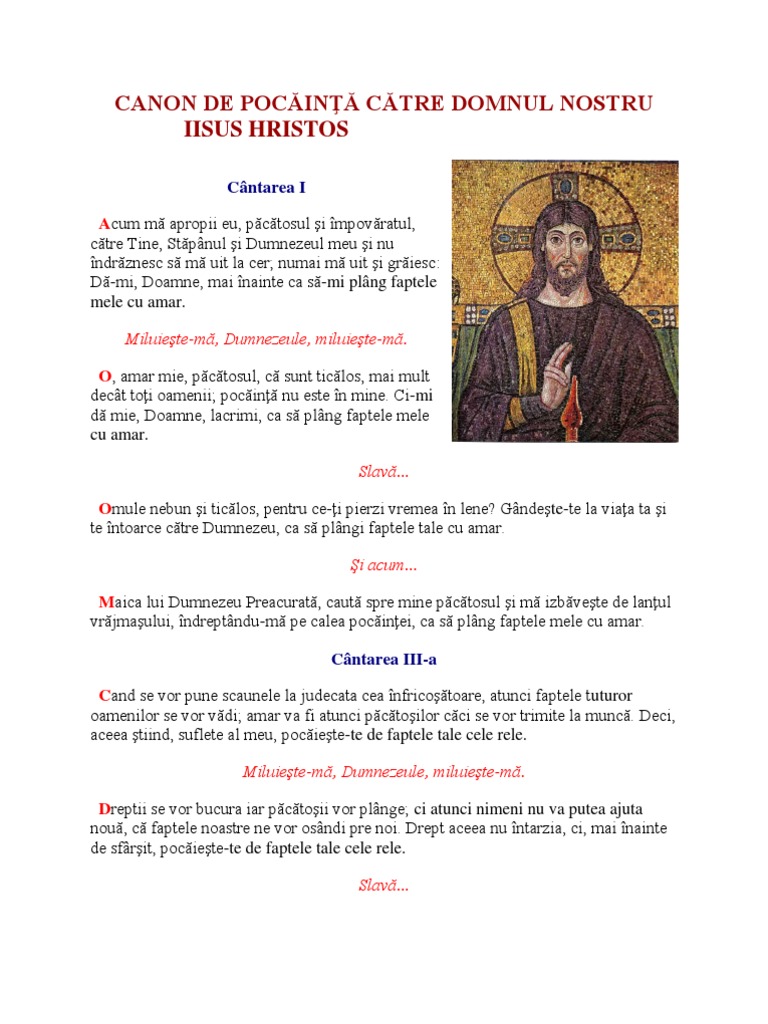 Canon de pocainta catre iisus hristos. împărate ceresc mângâieto rule duhul adevărului care pretutindenea ești și toate le îm plinești vistierul bunătăților și dătătorule de viață vino și te sălășluiește întru noi și ne curățește pe noi de toată întinăciunea și mântuiește bunule sufletele noastre. Canon de pocăință către domnul nostru iisus hristos 22 03 2018 22 03 2018 doar ortodox niciun comentariu canon domnul iisus hristos iertare mila pacate pocainta rugaciune spovedanie. Numai mă uit şi grăiesc. Numai ma uit si graiesc.