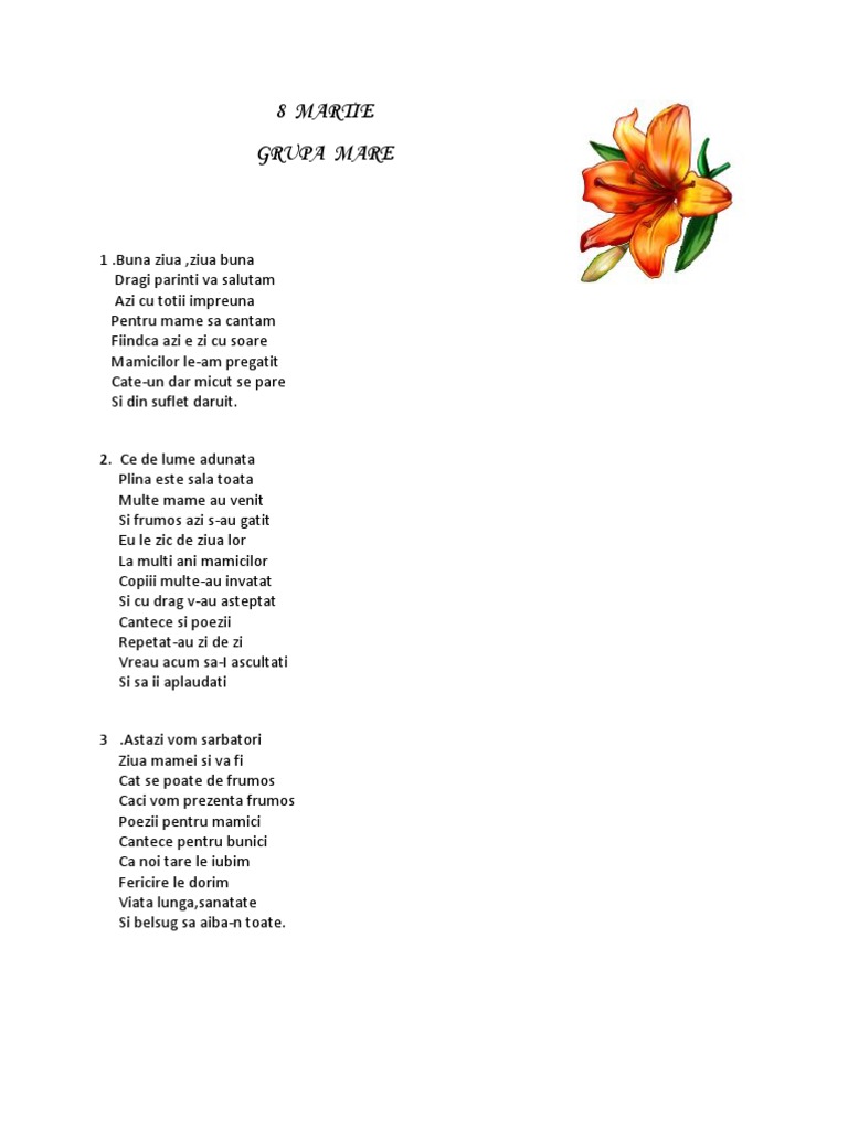Download gratuit cantece pentru copii 8 martie. Cea mai mare colecție de cântece pentru copii. Se pare că ghicitori de 8 martie este unul foarte popular din moment ce are. Cântecele noi vor apărea în fiecare săptămână așa că nu uita să te abonezi.