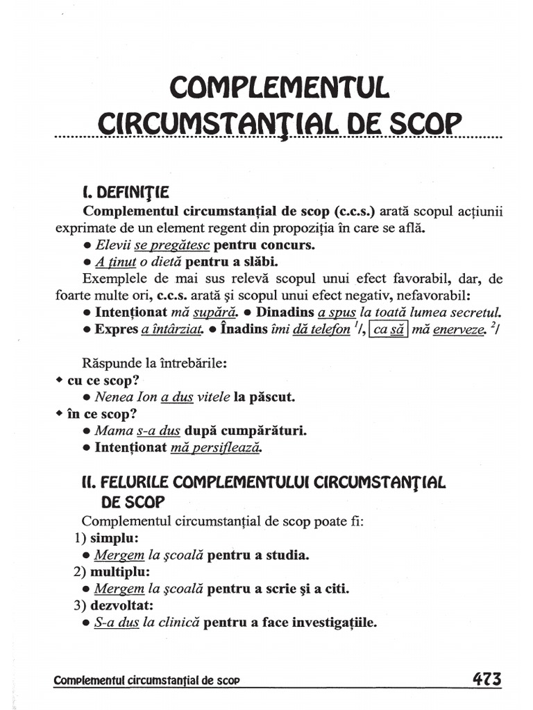 Propoziția circumstanțială de scop finală corelativele propoziției finale. Complementul circumstanțial de mod este complementul circumstanțial care arată cum se desfășoară o acțiune sau arată cum se înfățișează o însușire. Complementul cirumstanțial de timp se exprimă prin. Verb la infinitiv precedat de un grup de cuvinte cu valoare de.