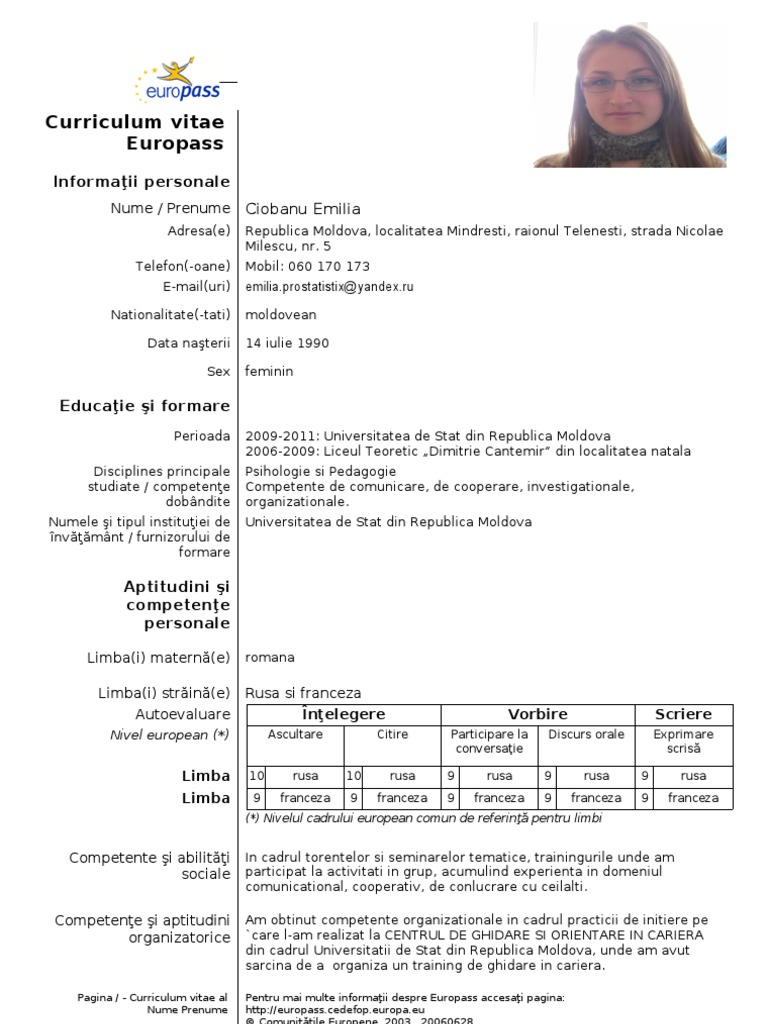 Cv European Model Cv Pentru Angajare