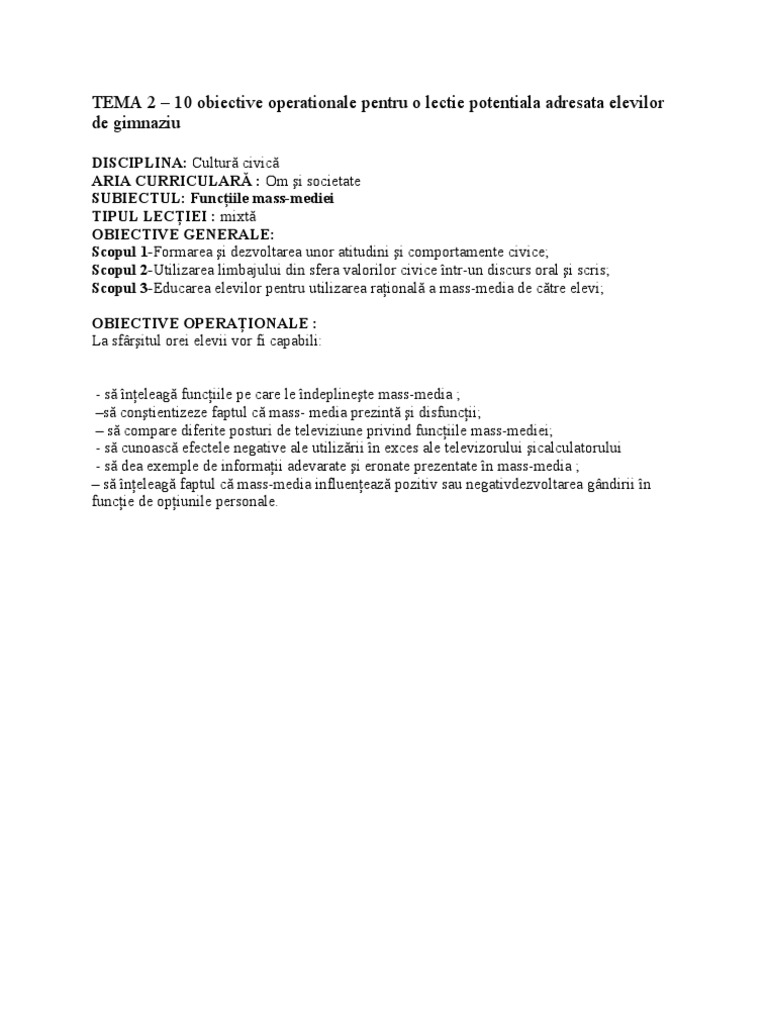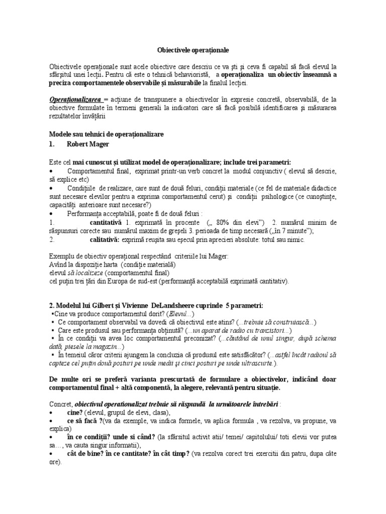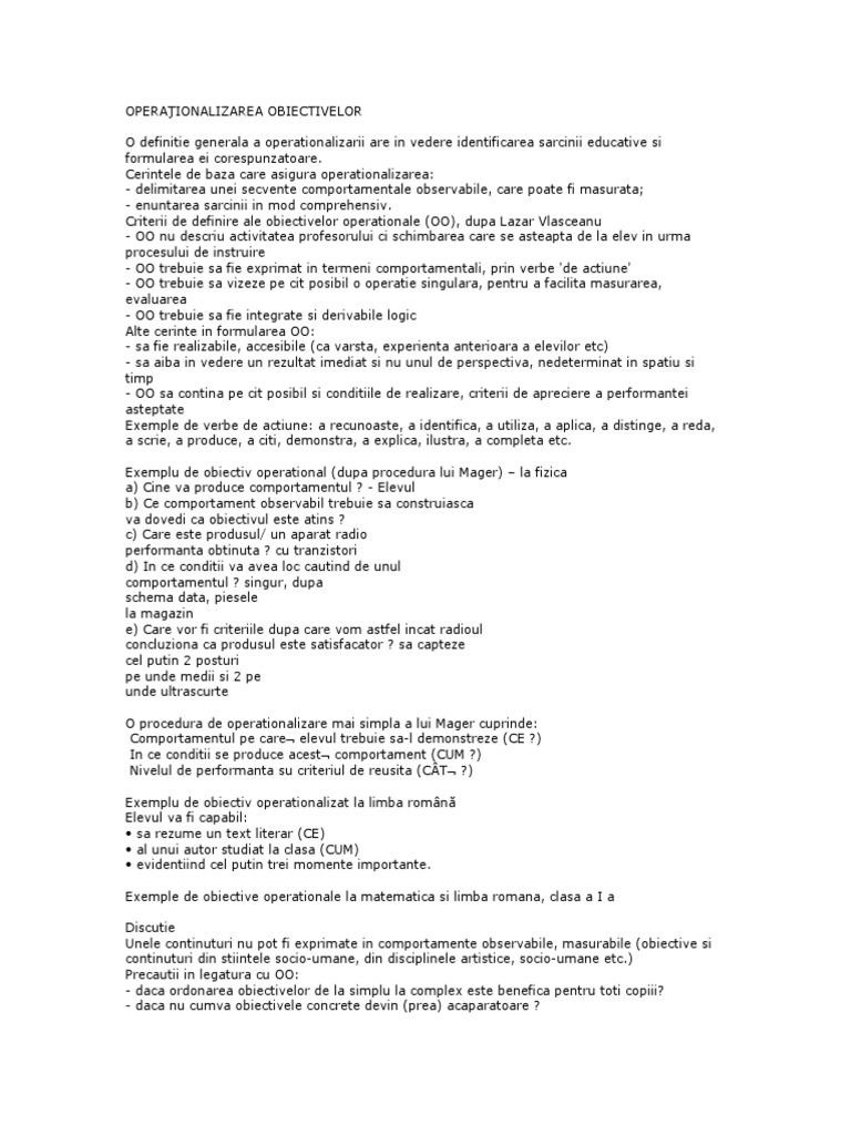 Exemple De Obiective Operationale