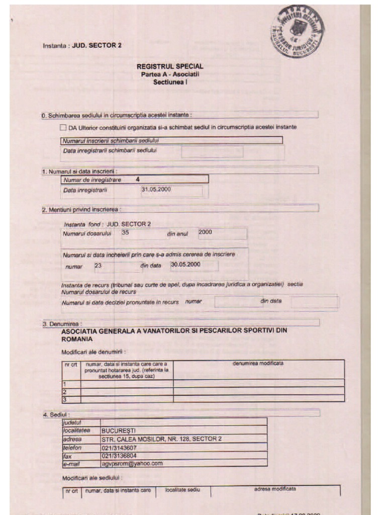 Depun alăturat taxa de timbru in valoare de 1 leu exemplar. Cumpărați documentul în formă actualizată sau alegeți un abonament lege5 care permite accesul la orice formă actualizată. Actualizarea componenței organelor de conducere din registrul asociaţiilor şi fundaţiilor prin modificarea actului constitutiv este într adevăr posibilă în practică însă reprezintă un artificiu implicând modificarea componenţa nominală a celor dintâi organe de conducere administrare şi control ale asociaţiei sau fundaţiei după o perioadă posibil îndelungată de funcționare a asociației sau fundației și nu o practică normală care să poată sta la baza. Registrul de asociatii fundatij si federatii din data.