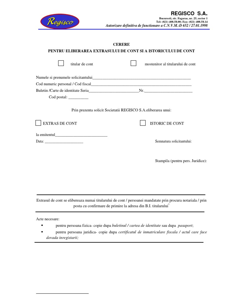 Pentru eliberarea extraselor pe suport hârtie se percep comisioane.