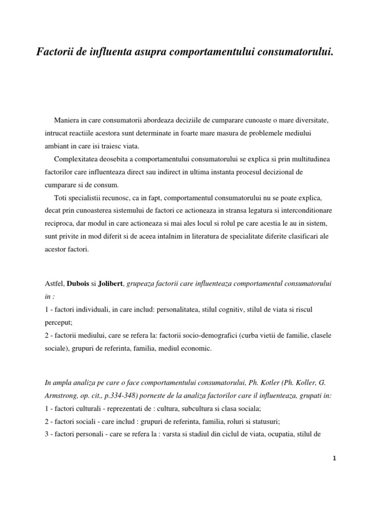 Factorii care influenteaza comportamentul consumatorului. 8 model de prezentare a factorilor care influenţează procesul decizional de cumpărare. Istoric dacia 27 2 3. Factori de influenta a comportamentului consumatorului. Mai jos poate fi vizualizat cuprinsul si un extras din document aprox.