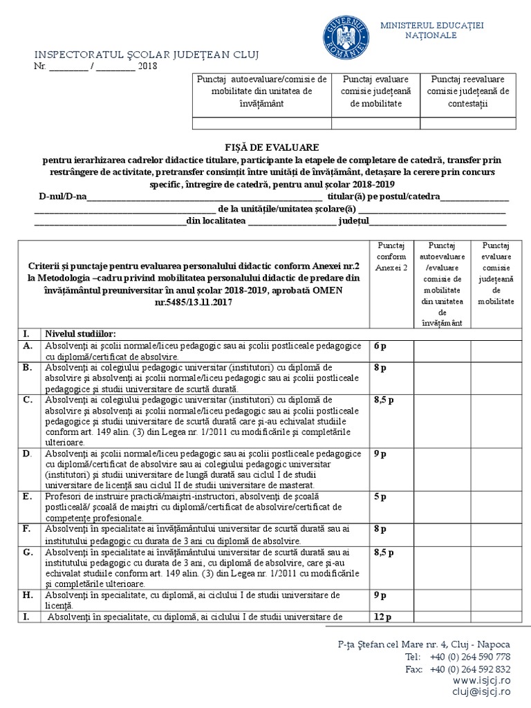 Fisa autoevaluare personal didactic auxiliar 2019. Fişa de autoevaluare evaluare pentru obţinerea gradaţiei de merit sesiunea 2019 personal didactic auxiliar asistent social elaborată pe baza metodologiei și criteriilor privind acordarea gradației de merit în învățământul preuniversitar aprobate prin omen nr. Fișa postului numele şi prenumele cadrului didactic. 0 stele 0 review uri. Fişă şi raport de autoevaluare evaluare în vederea acordării calificativului anual pentru cadrele didactice din învăţământului preuniversitar omen nr.