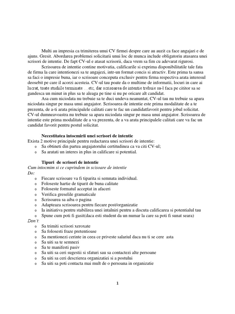 Scrisoarea de intentie nu este un act de sine statator ea va fi insotita intotdeauna de curriculum vitae. Când ai nevoie de o scrisoare de intentie. Va rugam a dispune a ne comunica a ne informa.