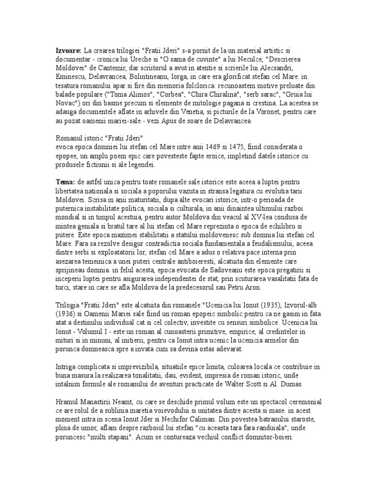 Rezumat fratii jderi volumul 1 mai jos o sa aveti mai multe rezultate pentru cautarea rezumat fratii jderi volumul 1. Saptamana viitoare pe 2 februarie 2011 urmeaza volumul 2 al cartii. în romanele frații jderi autorul pune. Fratii jderi rezumat trilogia fraţii jderi este alcătuită din romanele ucenicia lui ionuţ 1935 izvorul alb 1936 şi oamenii măriei sale 1942 aceasta evocă epoca domniei lui ştefan cel mare între anii 1469 şi 1475 fiind considerată o epopee un amplu poem epic care povesteşte fapteeroice împletind datele istorice cu produsele ficţiunii şi ale legendei.
