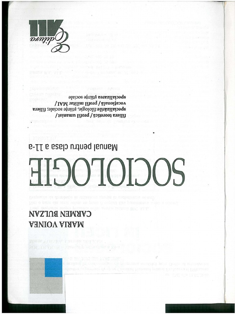 Manual pentru clasa a xi a. Save save manual de sociologie for later 90 90 found this document useful mark this document as useful 10 10 found this document not useful mark this document as not useful. Manual pentru ciclul superior al liceului clasa a xi a filiera teoretica profil umanist specializa rile stiinte sociale filologie si filiera vocationala profil militar mai specializarea stiinte sociale. 21x26 cm bicolor autori.