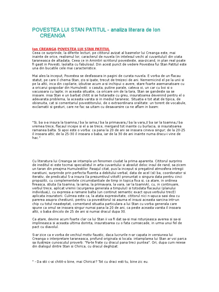 Povestea lui stan patitul de ion creanga 2. Povestea lui stan păţitul de. și flăcăul acela din copilăria lui se trezise prin străini fără să cunoască tată și mamă și fără nici o rudă care să l ocrotească și să l ajute. şi flăcăul acela din copilăria lui se trezise prin străini fără să cunoască tată şi mamă şi fără nici o rudă care să l ocrotească şi să l ajute şi ca.