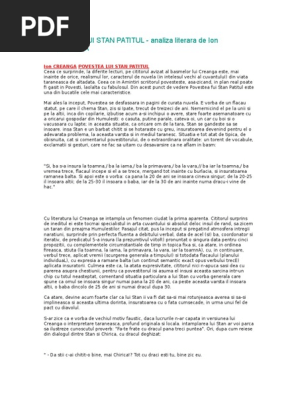 Chirică îl învăță să meargă la horă duminica și când va pune ochii pe o fată să l cheme și pe el ca să vadă câte coaste de drac are fata. Povestea lui stan pățitul ra odată un flăcău stătut pe care l chema stan. Era odata un flacau statut pe care l chema stan. Rezumat scurt de o pagină de fișier word la povestirea povestea lui stan patitul în care este vorba despre un flăcău pe nume stan care era orfan dar muncise din greu și își făcuse și el un pic de situație materială.