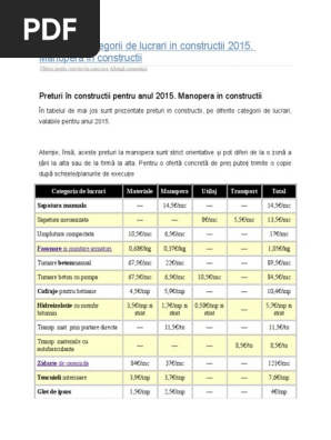 Pret zidarie pe muchie executata cu caramida plina de 24 11 5 6 3mm armata cu otel beton ol37 d 6mm la trei randuri de caramida. Pret manopera constructii ca pret manopera constructii putem defini lucrari mari de investitii finantate de stat centralizat sau din bugete locale ce necesita documentatii elaborate dupa o metodologie rigida cu preturi ferme sau actualizate numai in anumite conditii speciale bine legiuite si impuse in contract.