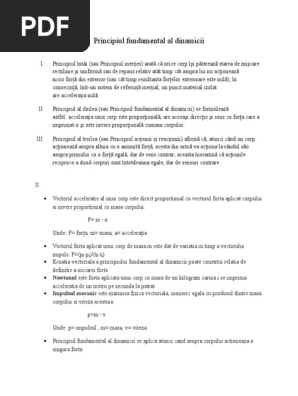 Sa scrie reproduca din memorie expresia matematica a principiul fundamental al dinamicii si sa indice semnificatia fizica a marimilor. 1 1 principiul i al inerției. Principiile aditionale principiul independentei actiunii fortelor si cel al suprapunerii efectelor. Principiile dinamicii principiul relativitatii lui galilei in orice sisitem de referinta inertial legile mecanicii au aceeasi forma f m a f m a sistem de referinta inertial 1 sistem de referinta inertial 2 dinamica principiul actiunii si reactiunii dinamica este o.