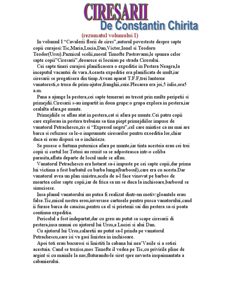 3 thoughts on cavalerii florilor de cireș cireșarii vol 1 andrei 08 08 2016 at 8 44 am noi nu folosim constructiv. Ciresarii vol 1 mai jos o sa aveti mai multe rezultate pentru cautarea ciresarii vol 1. Constantin chirita scriitor roman nascut in anul 12 03 1995 si mort in anul 1991. Noi doar copiem ce ai scris tu mulțumim frumos.