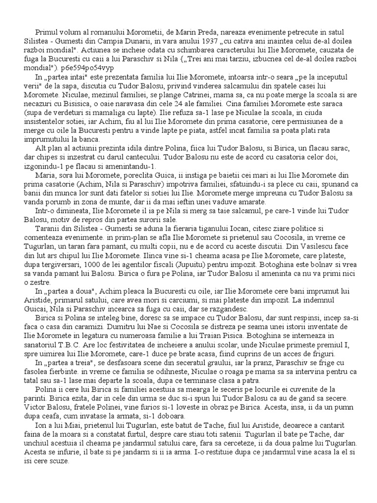 Este prezentat ţugurlan cu obişnuita sa pornire duşmănoasă pe viaţă şi pe cei din. Morometii rezumat morometii referat morometii volumul 1 referate romana familia moromete se întorsese mai devreme de la câmp şi cum au ajuns acasă cei trei băieţi ai lui ilie moromete. Romanul debutează cu sosirea familiei moromete de la camp când băieţii fug să se odihnească fetele se duc să se scalde mormete rămânând singur să descarce căruţa şi să o tragă la umbra celor doi mari salcâmi din curtea lor. Volumul i prima parte.
