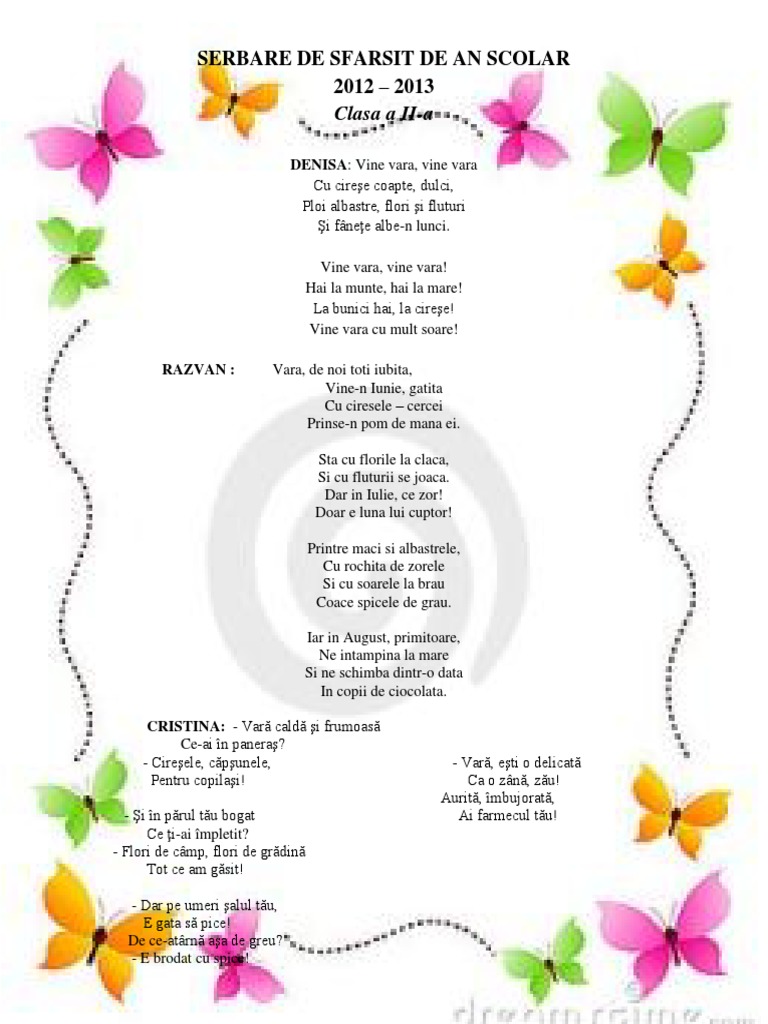 Serbare de sfârșit de an clasa i florile munților 2015. Cu siguranţă eram în clasa a ii a pentru că atunci în clasa a ii a am învăţat tabla înmulţirii. 0 stele 0 review uri. Serbare de sfarsit de an 2012 gradinita prikindel la teatrul tandarica 8.