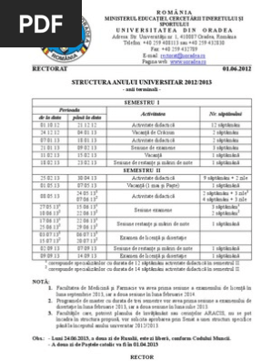 Structura Anului Universitar Oradea