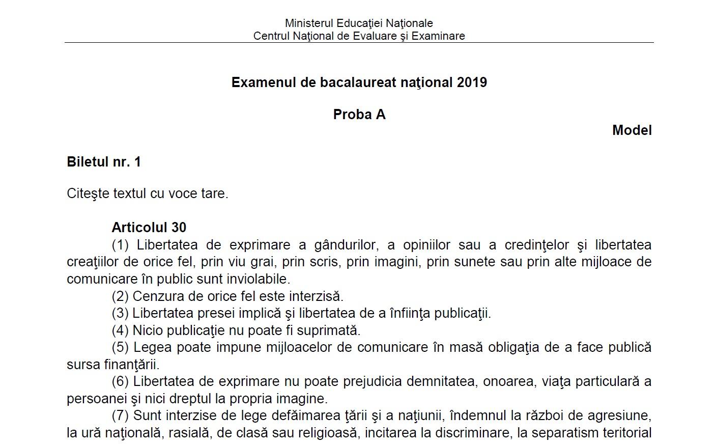 Modelul pentru examenul de anul trecut conţinea un subiect cu un citat din mircea eliade cu două întrebări iar prima avea 3 subpuncte. Publicat pe 11 02 2018 la 13 15 actualizat pe 19 03 2019 la 18 51 ministerul educaţiei a pus la dispoziţia candidaţilor la examenul de bacalaureat 2018 modele de subiecte pentru proba orală la limba română din februarie. Subiectele de la proba orală a limbii engleze. Limba si literatura materna proba e b proba scrisa.