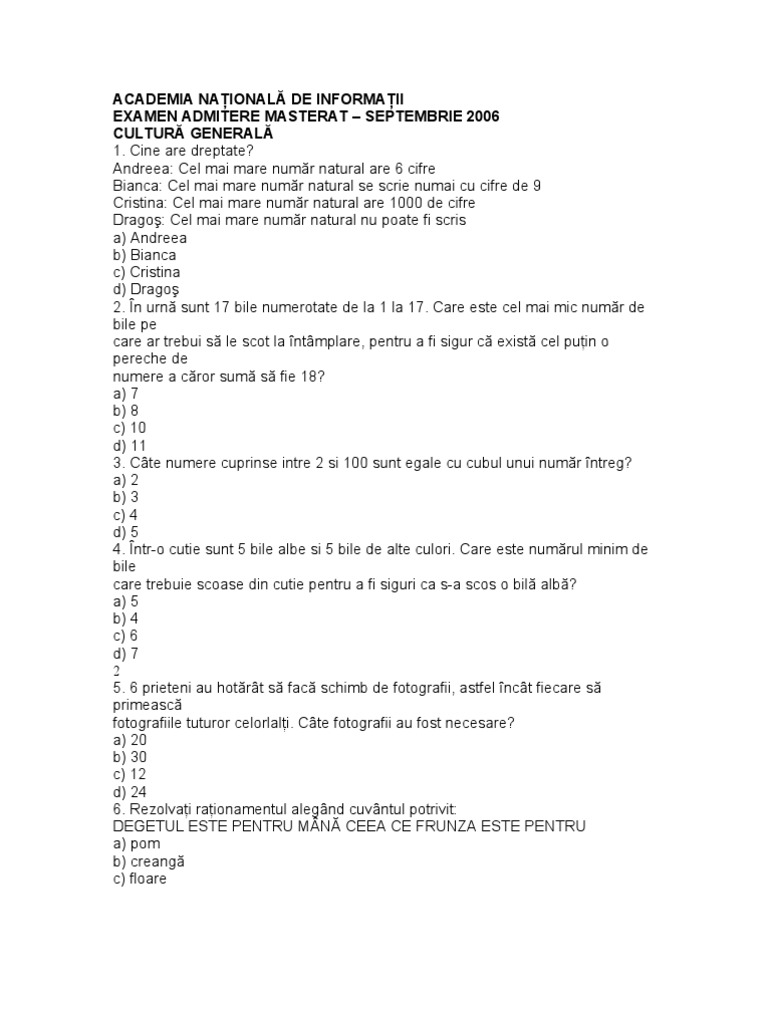Vei face parte din prima linie de apărare şi protejare a ţării tale lucrând alături de oameni cu abilităţi de excepţie. Dacă acul unui ceas se deplasează în sensul invers al acelor de ceasornic de la ora 17 00 la ora 14 00 câte grade se va fi întors. Un test de cultură generală pentru angajarea la serviciul român de informaţii este unul complex. După câte ore se vor întâlni.