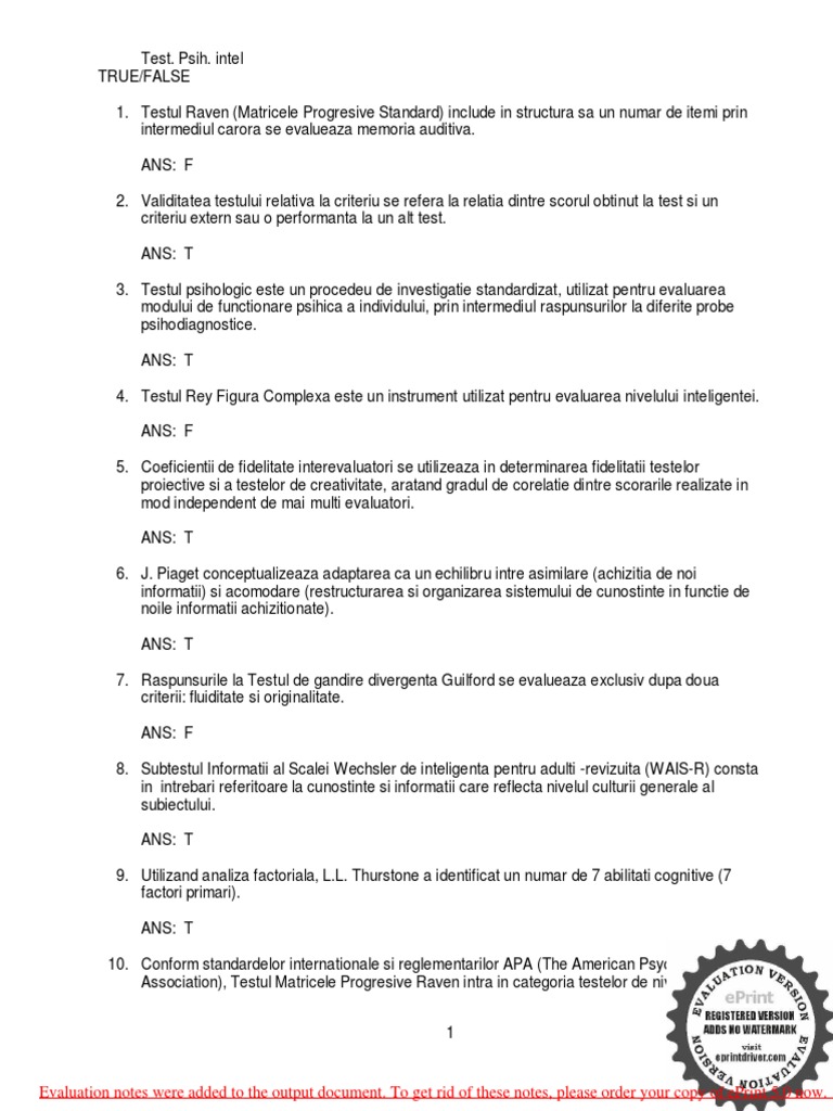 Teste De Inteligenta Sri