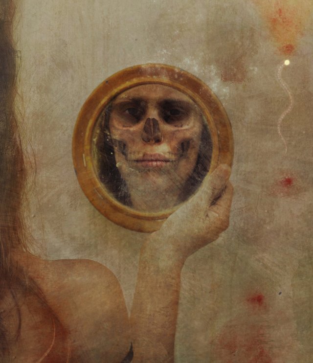 Kunstmuseum basel switzerland three ages of man and three graces 1539. The painting is an example of klimt s symbolic and allegorial works. The central figure is a fair skinned young woman seen admiring herself in a mirror. One of baldung s better known paintings is the three ages of woman and death painted in 1510 and currently in the possession of the kunsthistorisches museum in vienna.