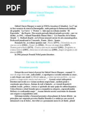 Un veac de singuratate rezumat. Cartea un veac de singuratate este unul dintre acele titluri clasice ale vremurilor noastre. Puteti gasi foarte multe referate accesand categoriile din partea dreapta despre marquez un veac de singuratate rezumat. Rezumat un veac de singuratate gabriel garcia marquez autor distins cu premiul nobel pentru literatură un veac de singurătate capodopera care l a propulsat pe gabriel garcia mărquez pe orbita celebrității internaționale și i a adus premiul nobel 1982 este în opinia unanimă a criticii după don quijote de la mancha nemuritoarea creație a lui cervantes cel mai frumos. Cien años de soledad este un roman scris de către câştigătorul premiului nobel în 1982 columbianul gabriel garcia marquez.