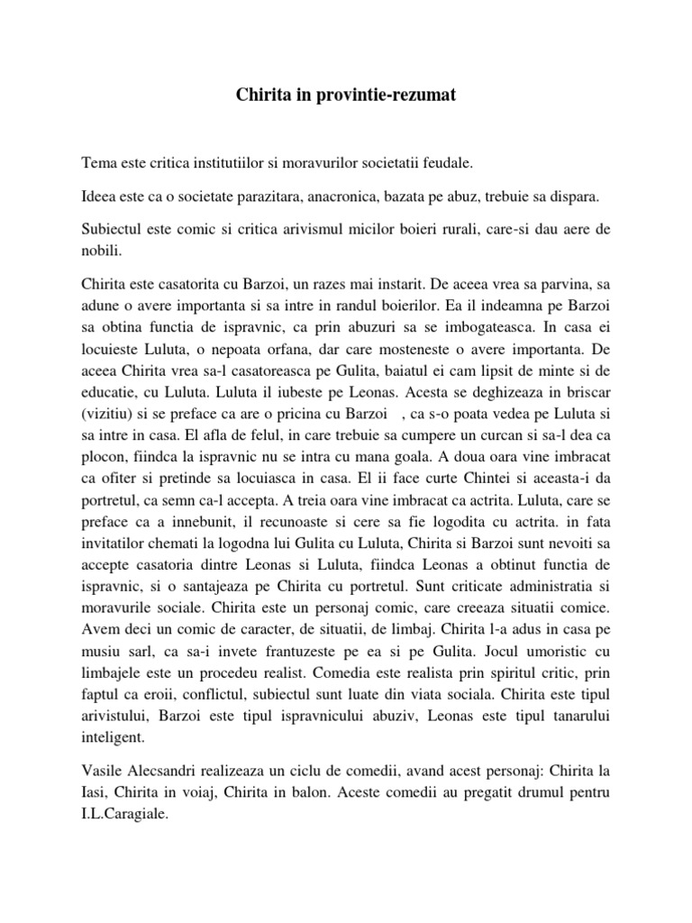 O fișă de lectură la cartea chirița în provinție care cuprinde descrierea sau un rezumat al subiectului o introduce a piesei trateaza specia literara expune tema cartii si explică titlul. Tuesday 13 october 2020 turda ioan ratiu 54 3 tel. In cazul in care nu gasiti referatul chirita in provincie rezumat pe acte vasile alecsandri va rugam sa efectuati o cautare dupa un singur cuvant cheie. Uita te mai jos si o sa gasesti cele mai relevante rezultate pentru cautarea chirita in provintie rezumat de vasile alecsandri.